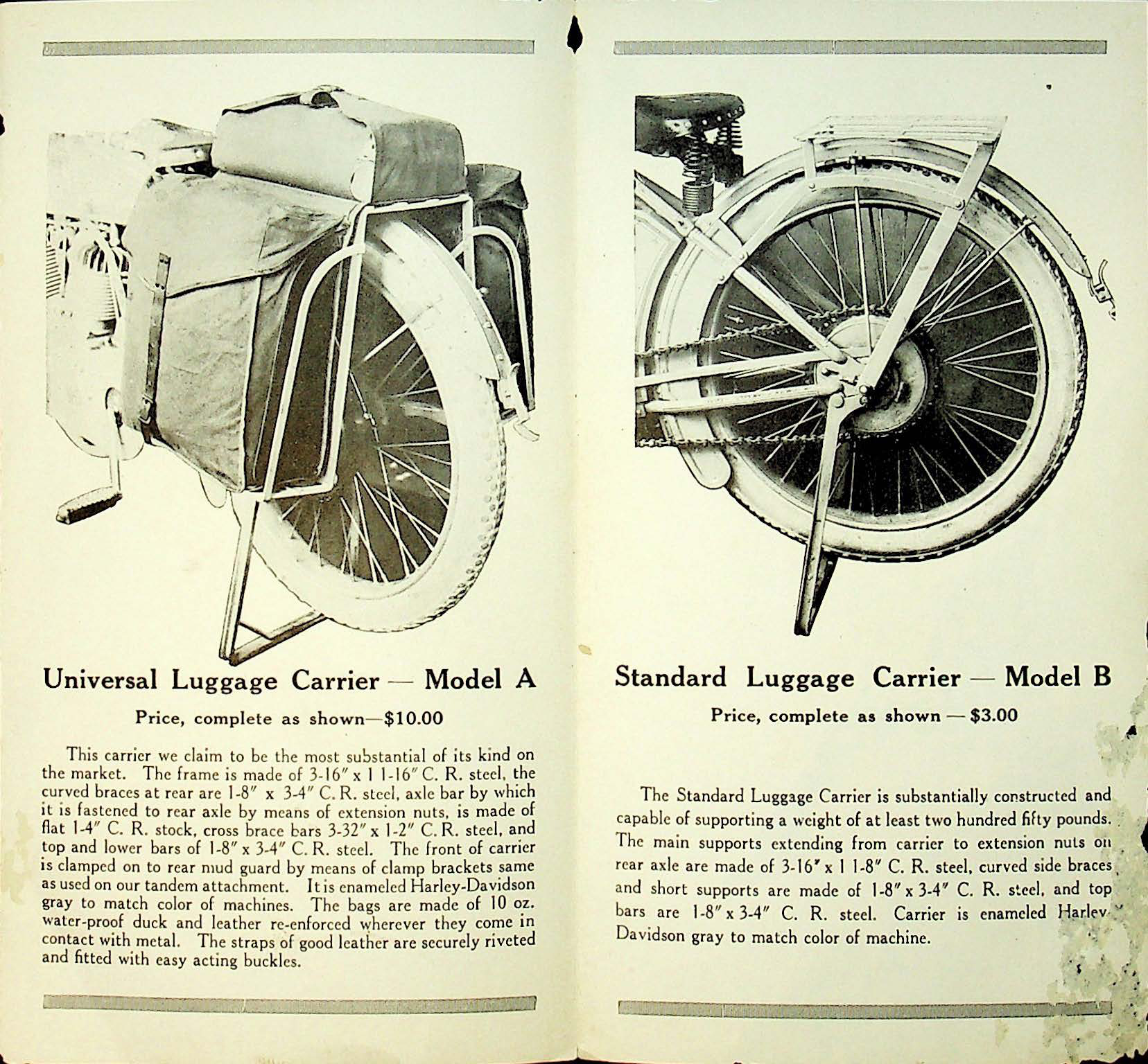 **1912 H RS604 D Harley Davidson Universal Luggage Carrier Brochure [604] Manual**