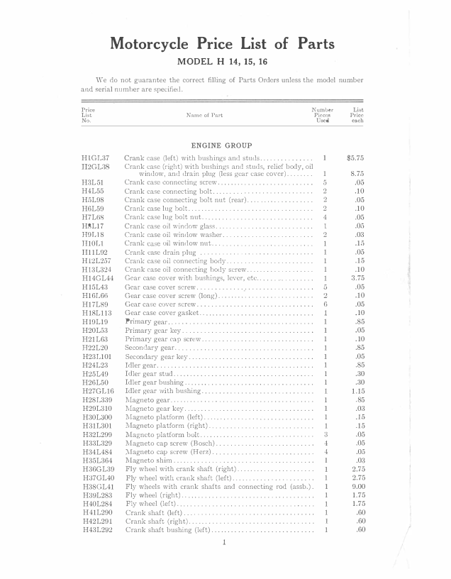 Model: RS150 Pope Motorcycle Models H 15, 15, 16 Price List of Parts [150]