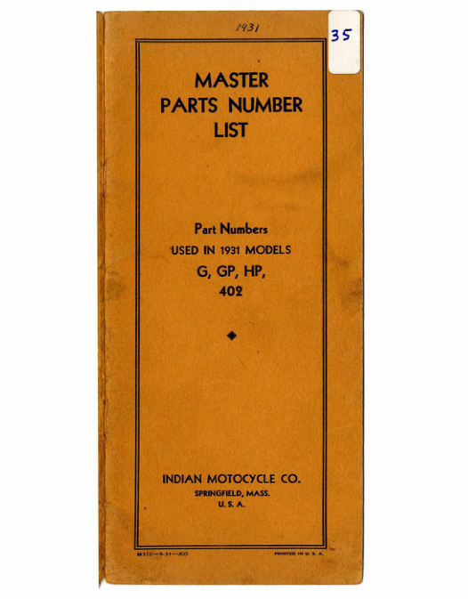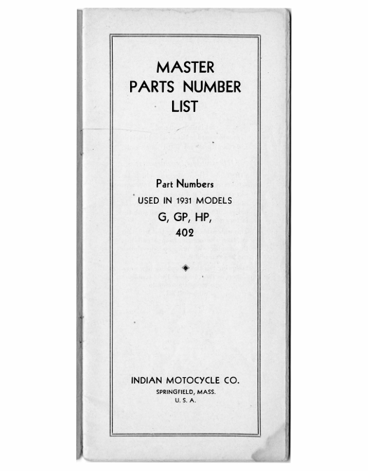 **1931 Indian RS470 Master Parts List Used in Indian Models G, GP, HP, 402 A1b [470] Manual**