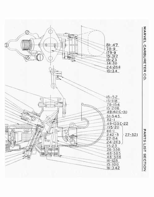Model: RS487 Parts List for Marvel Model AC Carburetor for Indian Model No 436 A1b [487]