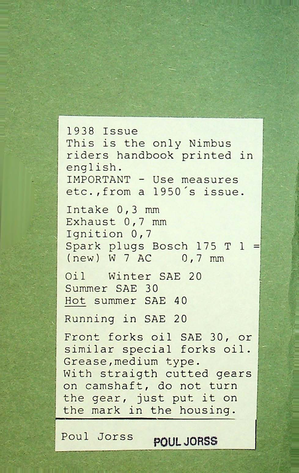 **1938 Nimbus RS656 Nimbus Care and Maint of the Nimbus Motorcycle [656] Manual**
