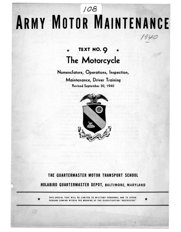 **1940 Indian RS514 Army Motor Maintenance Text No 9 The Motorcycle A1b [514] Manual**