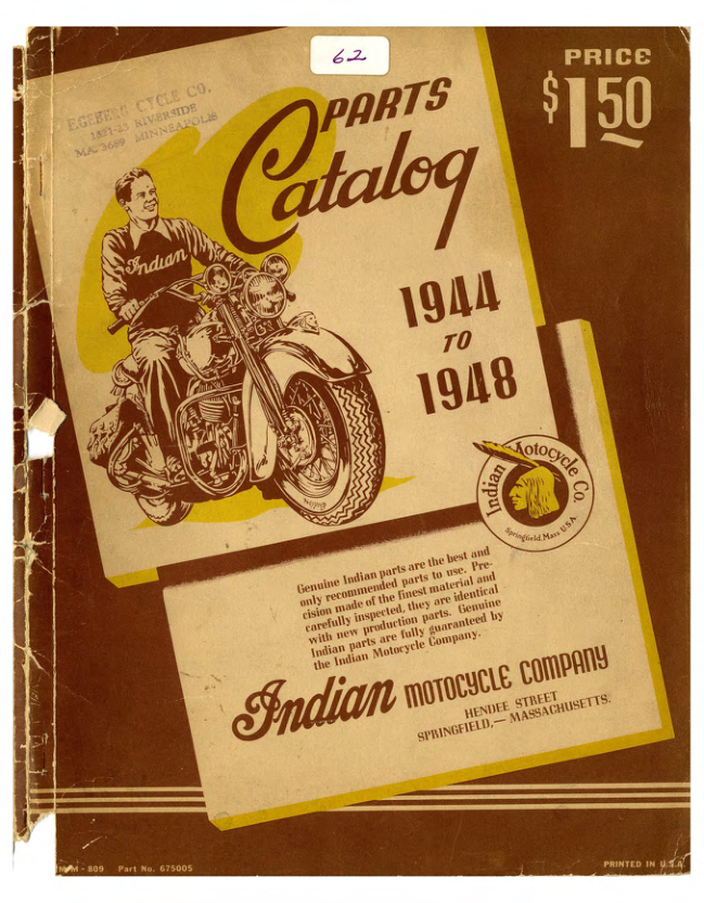 **1944-1948 Indian RS539 Indian Parts Catalog 74, Sidecar, and Sidevan A1b [539] Manual**