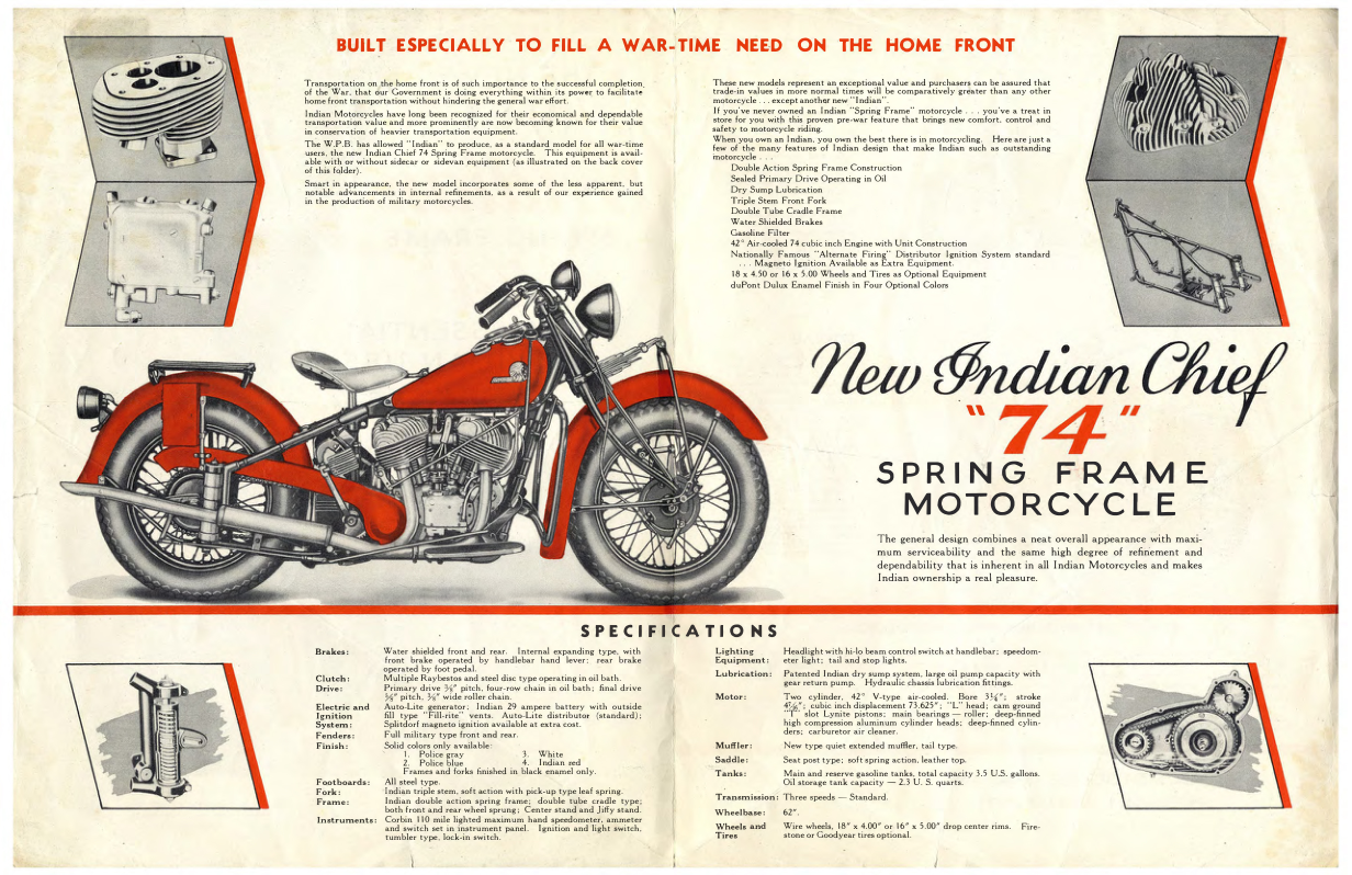**1944 Indian RS538 The New Indian Spring Frame 74 A1b [538] Manual**