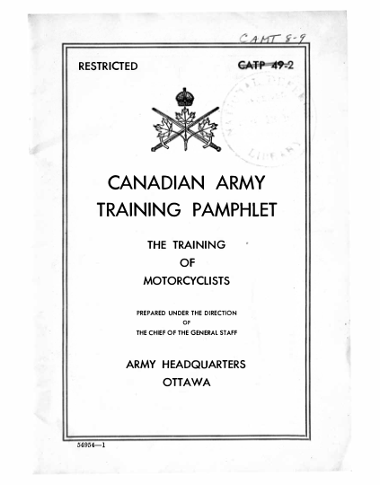 Model: RS19 Army Canadian Army Training Pamphlet The Training of Motorcyclists [19]