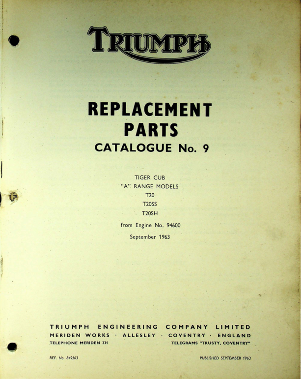 Model: RS680 Triumph Triumph Tiger Cub Replacement Parts Catalogue No9 [680]