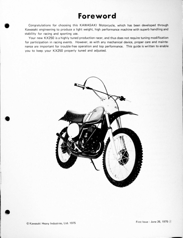 **1975 Kawasaki RS725 KX250A3 Owners Shop [725] pdf Manual**