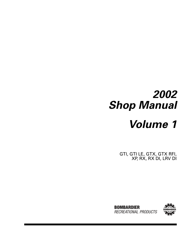 **2002 Seadoo shop Volume 1 (GTI, GTI LE, GTX, GTX RFI, RX, RX DI, XP, LRV DI) Volume 2 (GTX DI, GTX 4 tec) Manual**