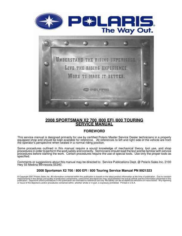 2008 Polaris 19715194 PS7E8E2SM Sportsman 700 Efi 800 Efi pdf Manual
