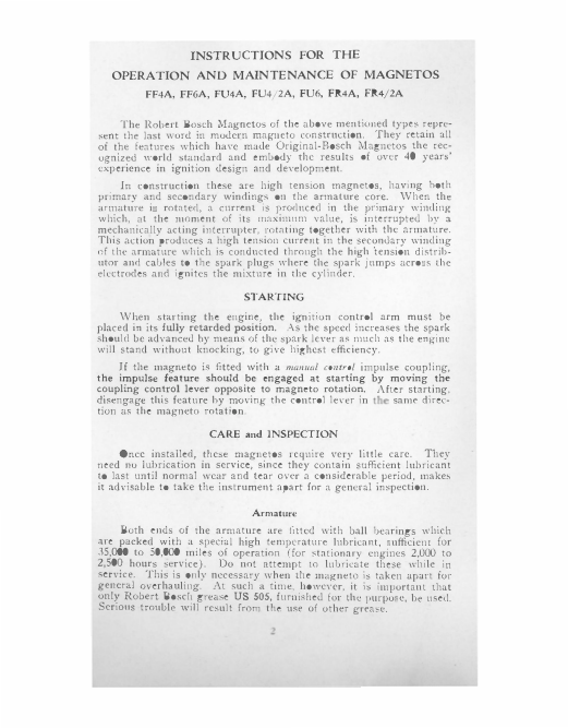 Model: RS18 Und Instructions for the Operation and Maintenance of Bosch Magnetos FF4A, FF6A, FU4A, FU4 2A, FU6, FR4A, FR4 2A [18]